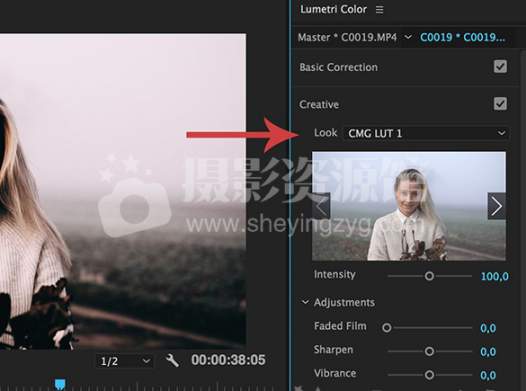 用它Lumetri颜色在Premiere Pro中下CREATIVE TAB一看调整力度: