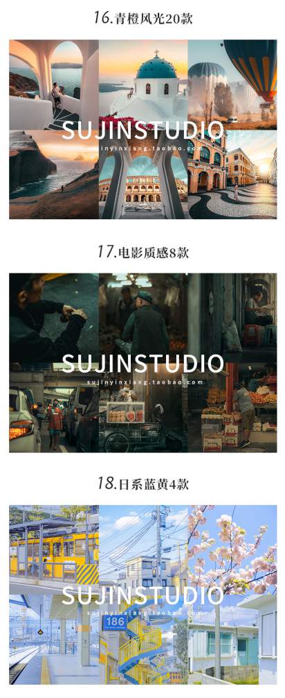 30套LR预设PS滤镜PR调色PS/LR/达芬奇FCPX视频LUTs
