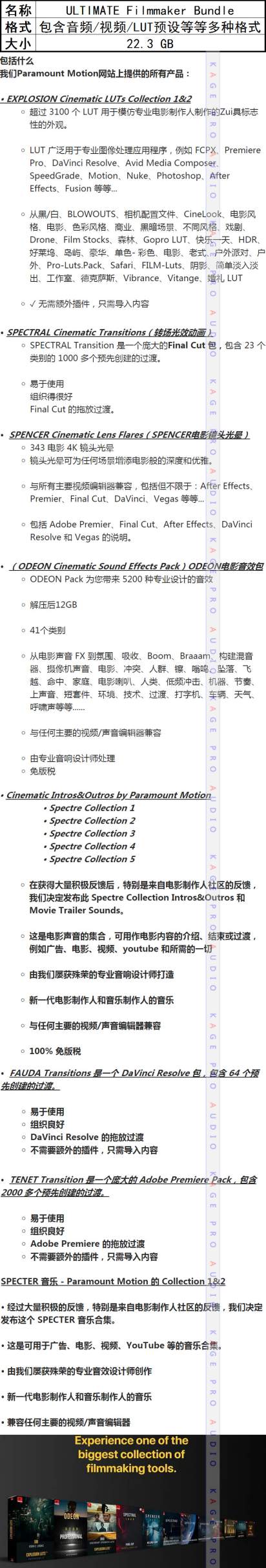 终极电影制作人ULTIMATE Filmmaker Bundle音效/转场/LUTS/镜头光晕视频素材 Paramount Motion