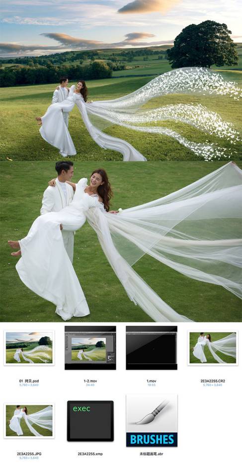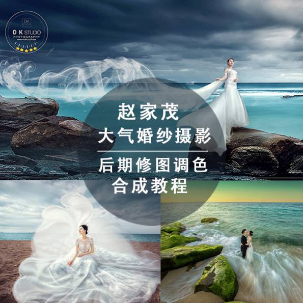 更新赵家茂PS影楼旅拍婚纱裙摆飘纱人像后期精修调色视频教程带素材83G
