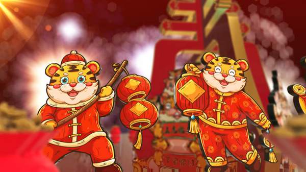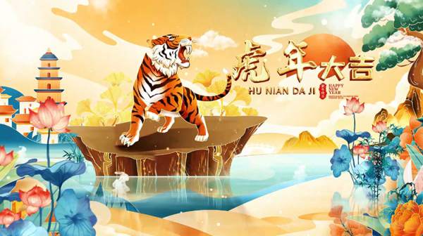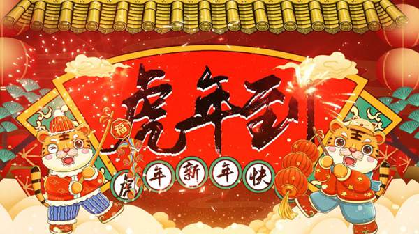223款拜新年虎年贺岁年会喜庆开场片头晚会LED大屏幕视频背景素材