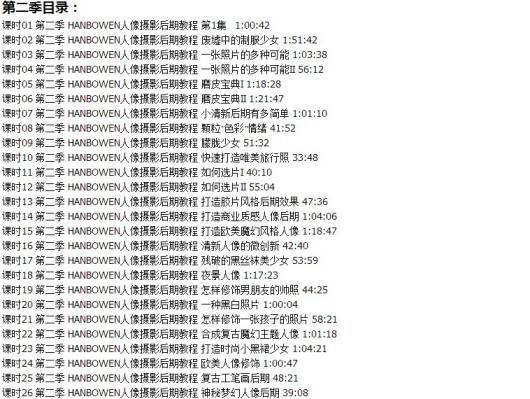 内容是人像摄影从原片到成片的全部过程记录以及讲解,平均每课时超过1小时,内容充分,适合初学摄影后期的朋友。