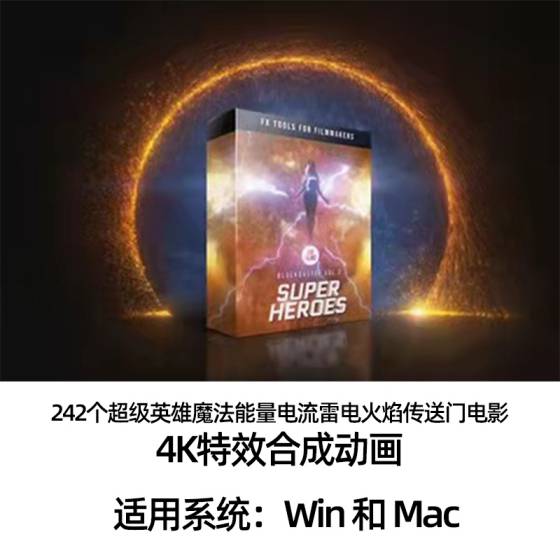 十二个大类共242个用于电影特效合成的4K视频素材,拥有:火焰,传送门,魔法能量,气功,弧线,闪电电流,镭射眼,地面破碎等;带透明通道,可直接与你的视频素材搭配组合使用。
