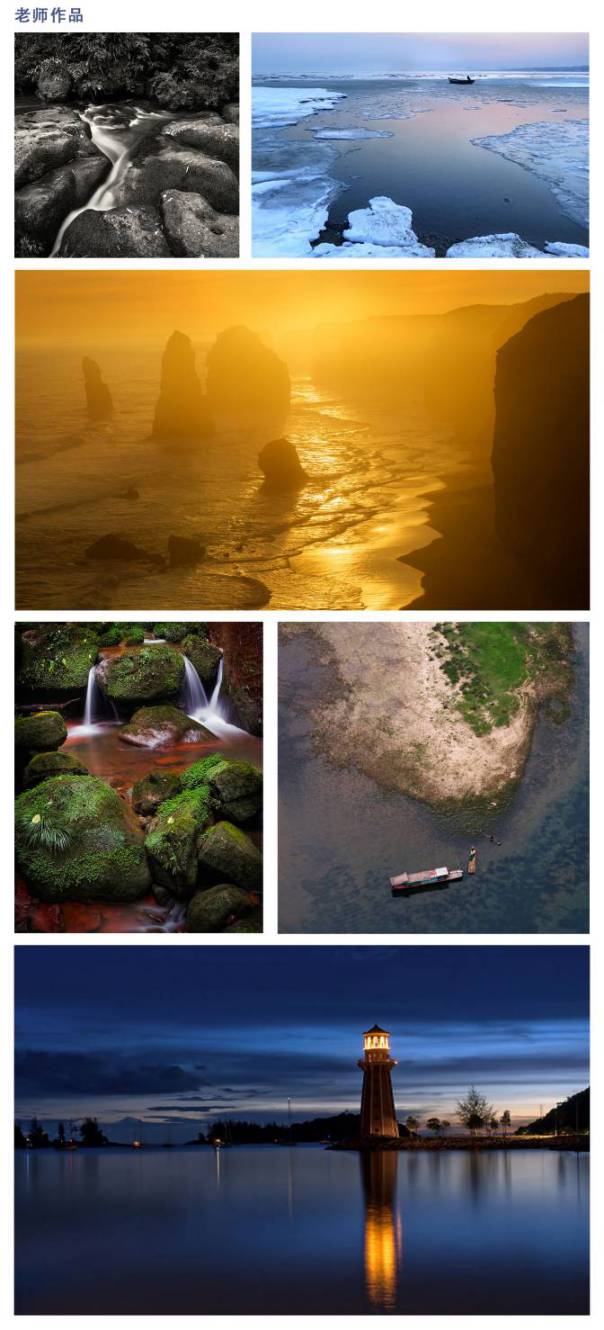 老师把风光摄影基础知识和常用技巧,融入到鲜活、简单、有说服力的实例当中,从而告诉初学者应该如何正确的拍摄,如何让大家少走弯路。