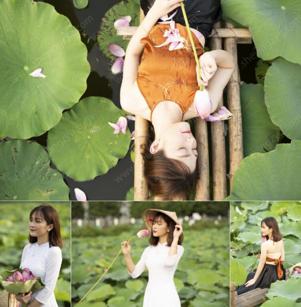 摄影RAW原图下载-荷花池中的娇羞少女14P-RAW原片