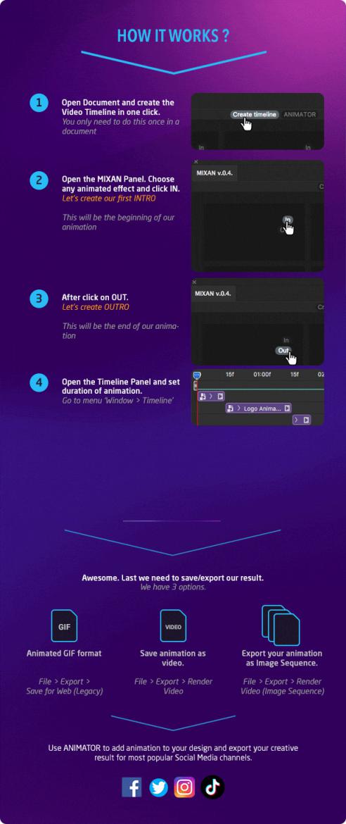 MIXAN Photoshop Plugin V0.5充满时尚和迷人的动画背景和图层叠加覆盖效果,这是专门给照片添加动画特效的转场幻灯插件,MIXAN可以给你的项目一个全新的生命。可以创建程式化的动画图像来展示你的设计。模板可以让你的设计脱颖。动画可以完全定制,你可以得到惊人的最终结果只需点击几下。下载后的压缩包里面有中文汉化安装文件,中文安装和使用说明,英文视频教程5个,PSD模板8个。