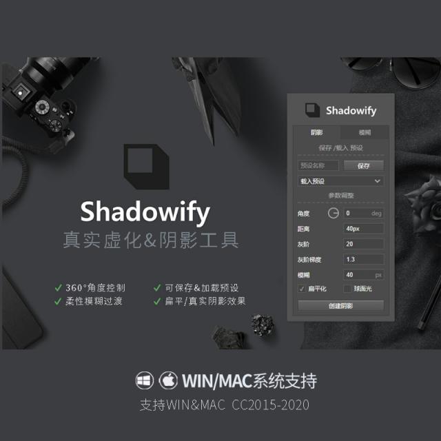 一个专注于Photoshop阴影的插件,方便好用,关键是制作出来的阴影特别自然和协调。