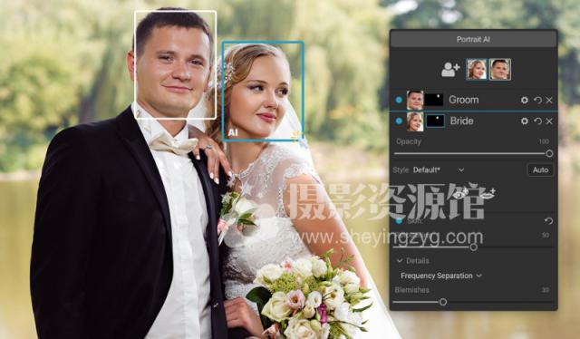 照片中的每个面孔都有独立的控件和调整项。例如,您可以为婚礼照片中的新娘和新郎使用不同的设置。