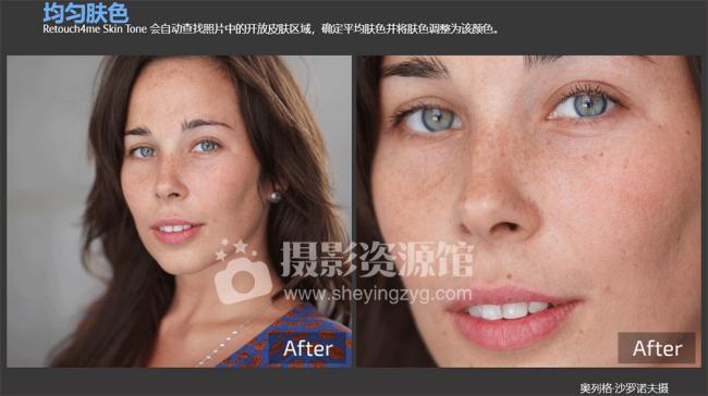 均匀肤色Retouch4me Skin Tone 会自动查找照片中的开放皮肤区域,确定平均肤色并将肤色调整为该颜色。