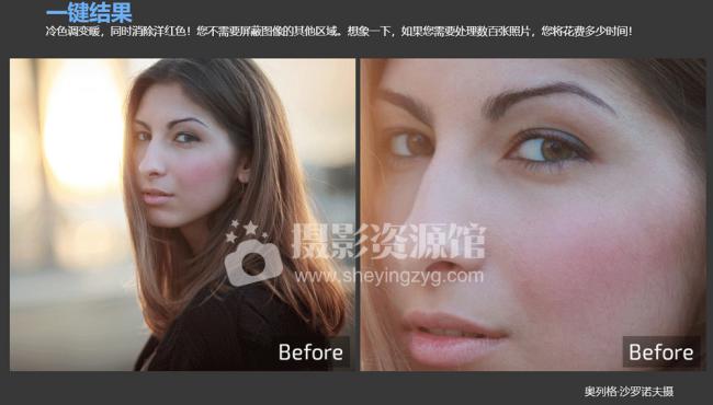 一键结果冷色调变暖,同时消除洋红色!您不需要屏蔽图像的其他区域。想象一下,如果您需要处理数百张照片,您将花费多少时间!