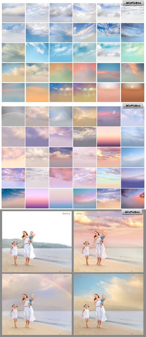 63组高清梦幻天空云彩叠加合成背景素材 含教程