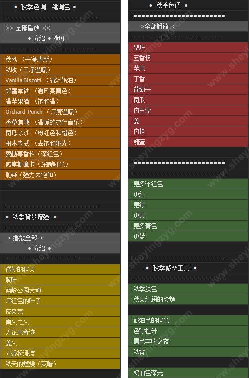 秋季摄影调色动作集 作者 : 图穷联盟 下载失效链接 推广链接 下载须知 如果链接失效请添加客服QQ:985303259进行反馈!直接说出您的需求切记带上资源链接及问题如有其它疑问请点击文章底部的【常见问题】 免费领取方式 调色动作套装: 【S1126】干净自然PS调色动作套装 【S1122】金色光芒PS动作套装 【S1113】411资源网冬季摄影修图PS动作套装 【S1105】411资源网PS一键修图动作套装V6 【S738】摄影后期修图工具套装5.0 含操作提示说明 含调色预设、背景增强、秋季色调、修图工具 兼容WIN和MAC,支持PS PS动作52 本站资源有的自互联网收集整理,如果侵犯了您的合法权益,请联系本站我们会及时删除。本站资源仅供研究、学习交流之用,若使用商业用途,请购买正版授权,否则产生的一切后果将由下载用户自行承担。图穷联盟摄影网 » 秋季摄影调色动作集