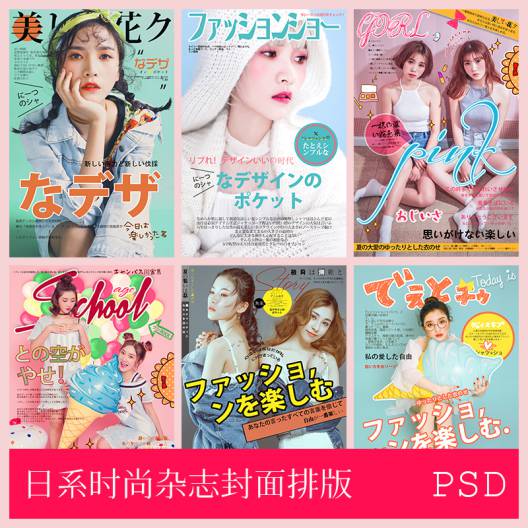 ins日系时尚少女摄影写真杂志封面PSD模板26P
