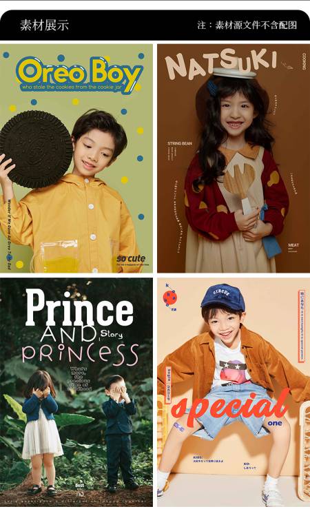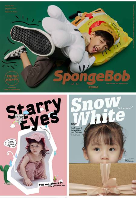 潮儿童少儿摄影照片写真相册字体文字PSD模板