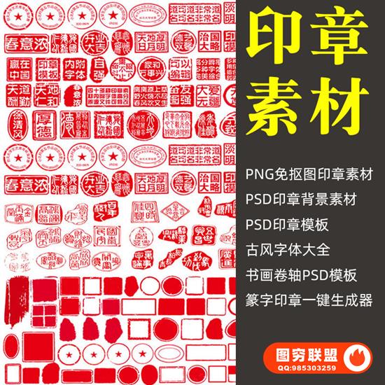 图穷联盟摄影网 » 中国风复古典 传统篆刻书法印章png免扣图、古风字体大全、PSD印章和印章一键生成器