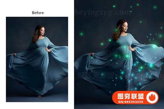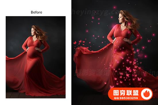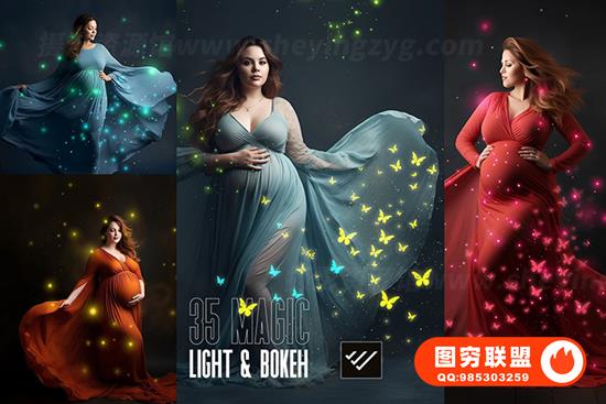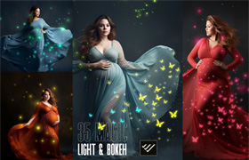 孕妇叠加魔法灯和散景叠加,蝴蝶和萤火虫闪耀孕妇灯工作室 Photoshop PNG 叠加,魔法灯