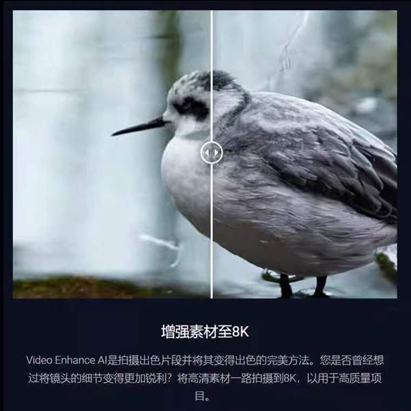 视频升级 传统视频升级只会拉伸分辨率、降低质量并破坏细节。从来没有一种方法可以从低分辨率素材中完美地重建高分辨率视频……直到现在。我们使用突破性的机器学习技术开发了 Video Enhance AI,以智能地升级视频素材,在高达 8K 分辨率的情况下实现清晰的细节和运动一致性。有人称之为“魔法”,但我们称之为 AI 的力量。