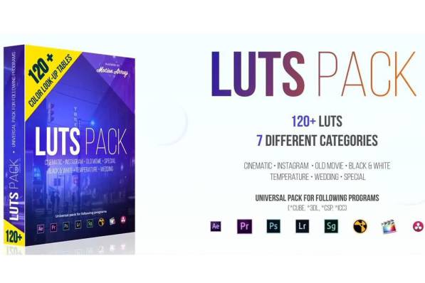 一共7种效果风格共120+视频调色LUTS预设