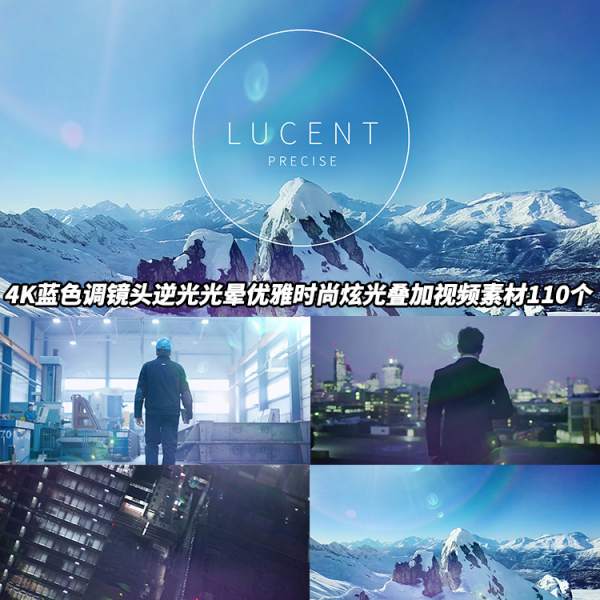视频素材-110个时尚优雅蓝色调镜头逆光光晕炫光叠加4K视频素材